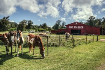 Stroll or trot along 12 miles of Turtle Bay Resort Oahu, Hawaii oceanfront trails and seaside pathways on our well trained and friendly horses. Listen to the sounds of birds and breezes through Ironwood trees and the roar of crashing surf and swaying palms. Visit our famous Banyan tree, filming site for several TV shows and films including "Lost" and "Pirates of the Caribbean." Exploring the beautiful paths at Turtle Bay Resort lets everyone experience Hawaii's beauty and some well-deserved moments of peace and tranquility with our Oahu horseback riding experience. 225lb weight limit for riders.